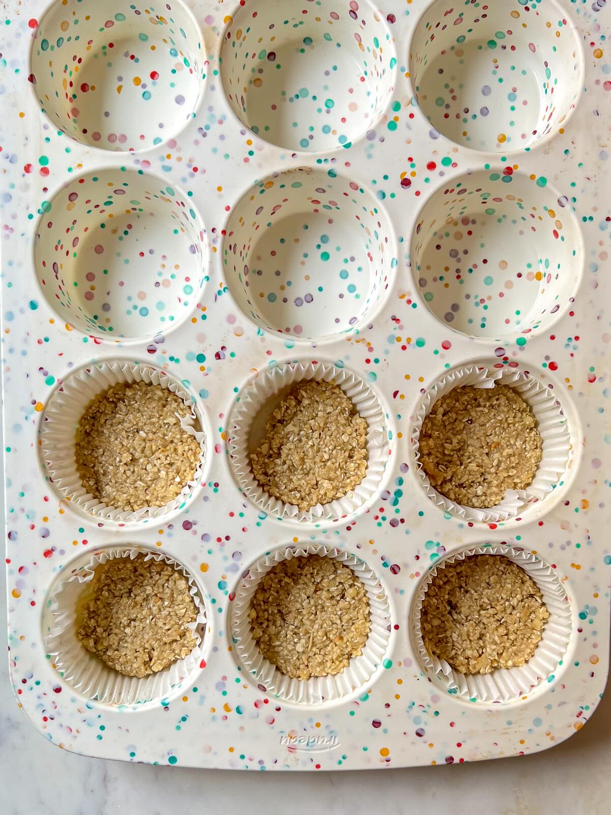 Press the dough firmly into the bottom of each cup to form a solid base.